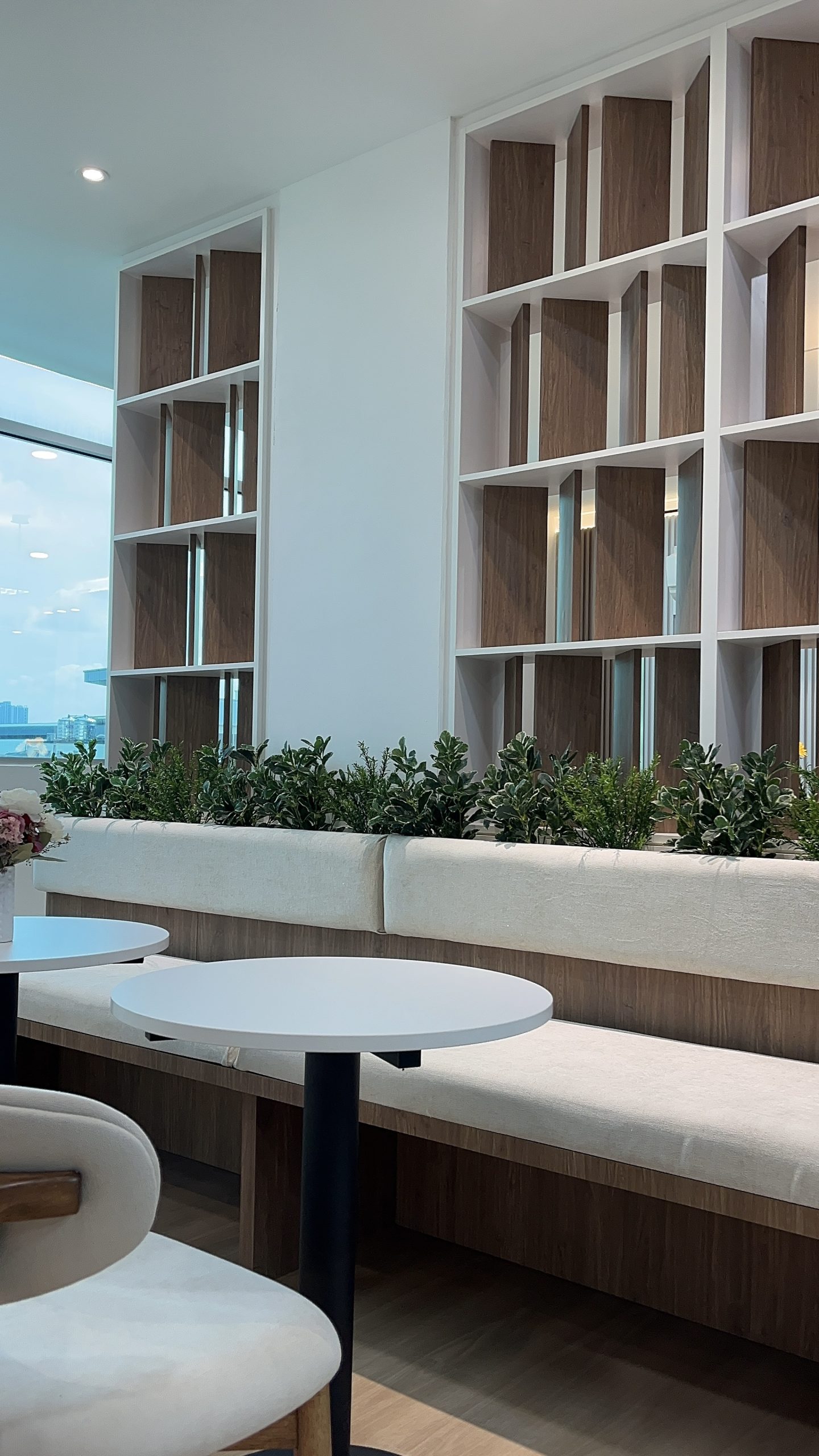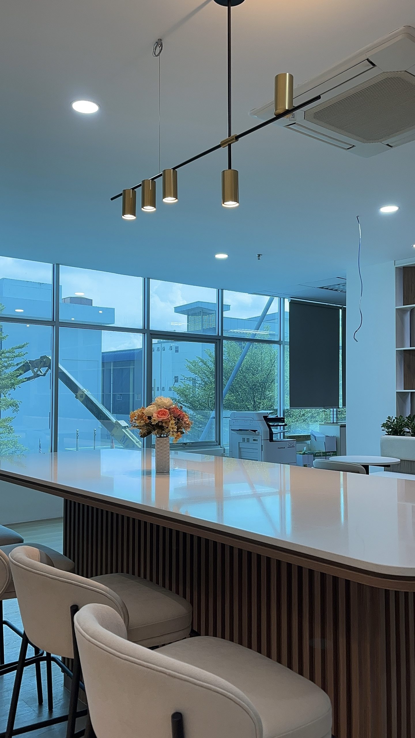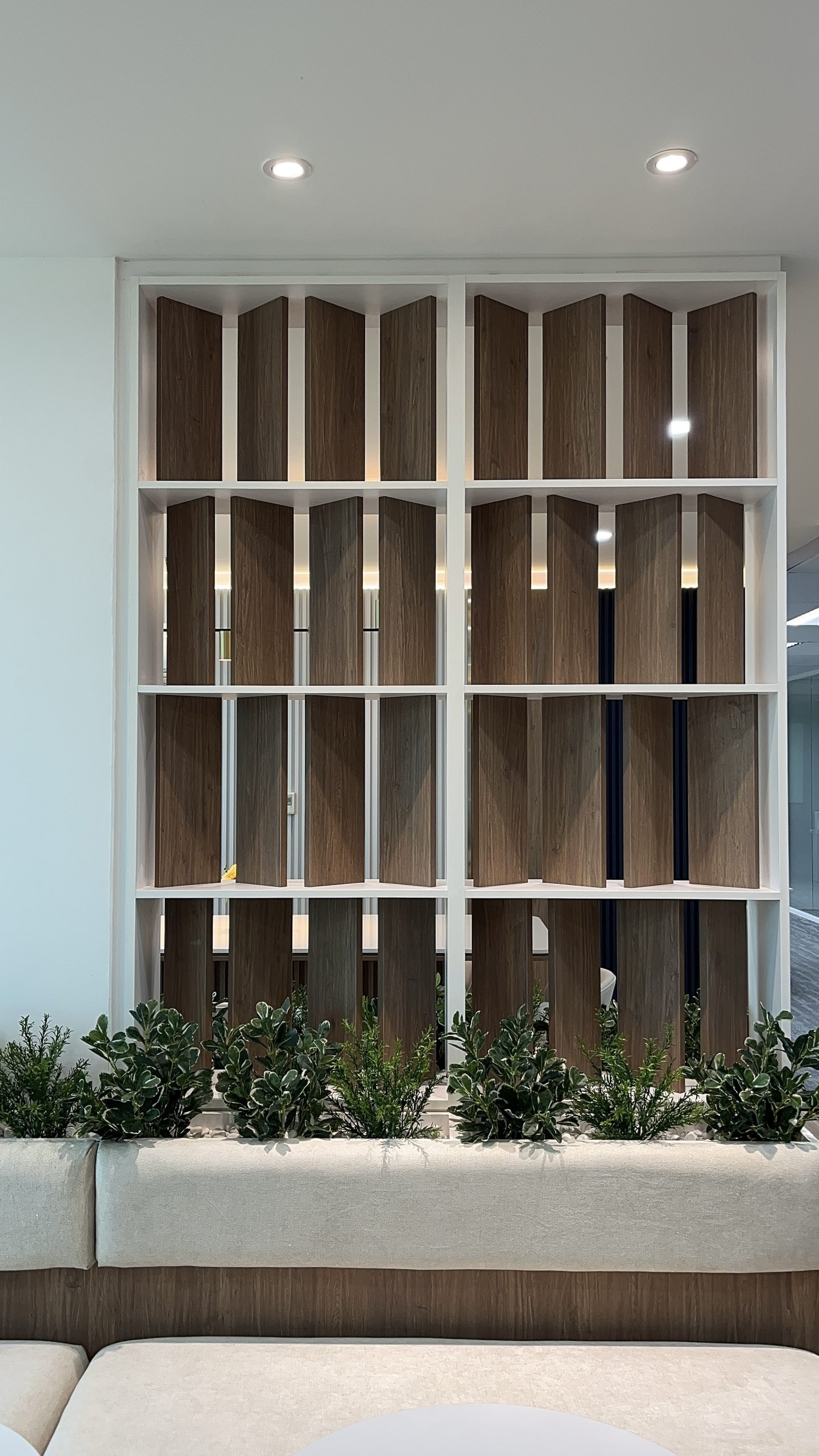 A grand first impression, designed to reflect Amcor’s identity from the moment you step in. From the statement entrance and curated greenery to an open workspace elevated with natural elements and warm wooden panels. A custom marble-finish discussion table anchors collaboration, while cafe-style seating brings comfort into the workday.