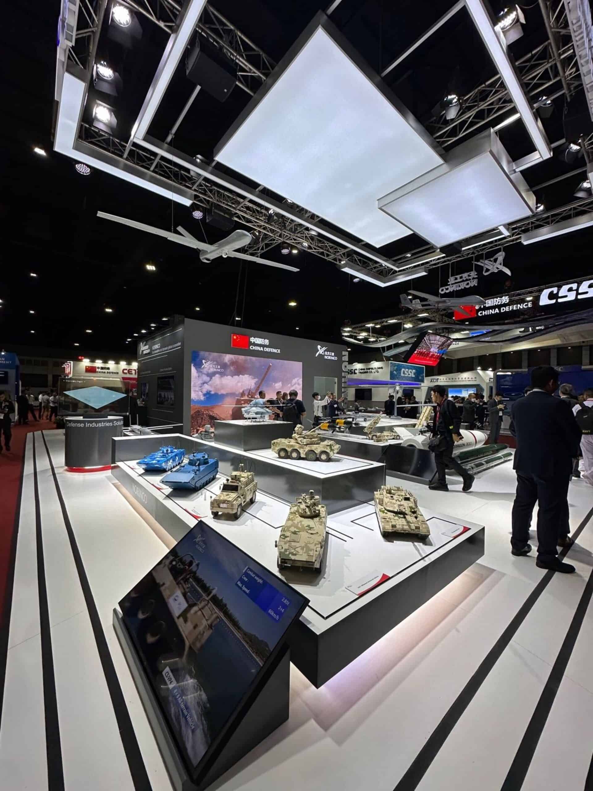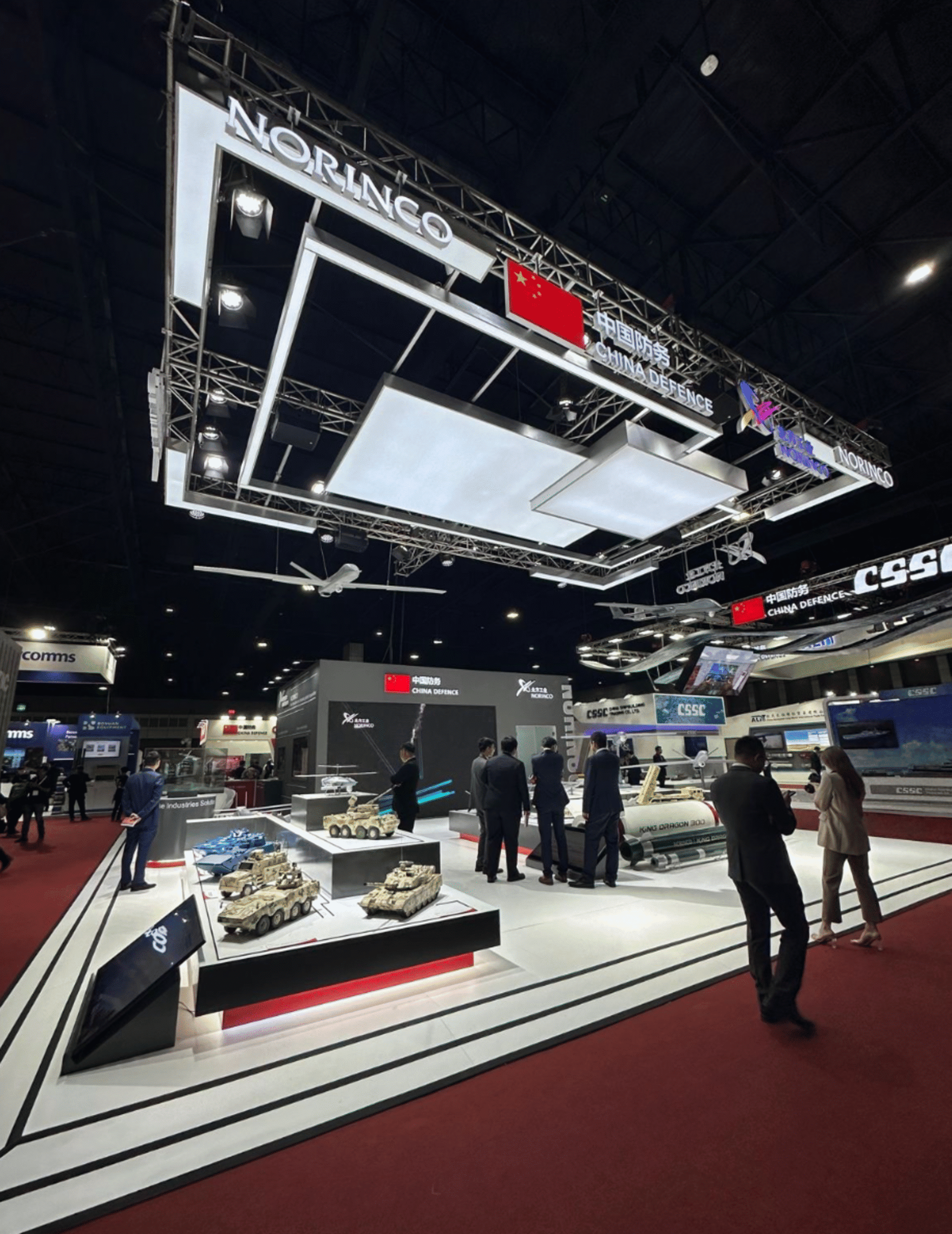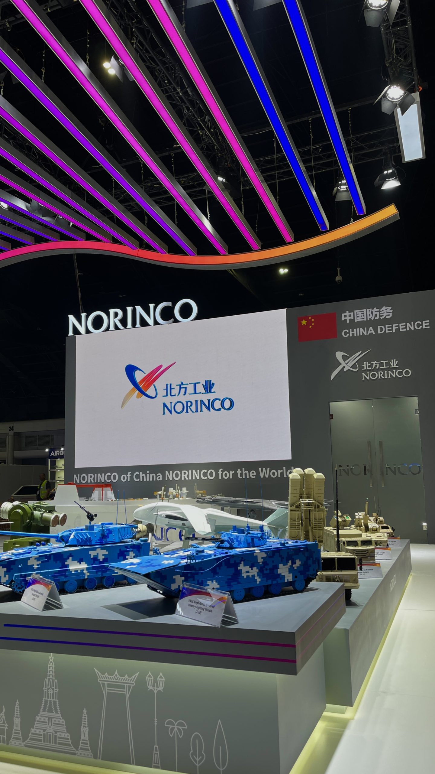 Dynamic booth, featuring gradient LED strips suspended from the truss to mirror the colors of the brand’s logo. A model aircraft was also hung from the truss, creating a captivating focal point that showcased the company’s capabilities to the live audience.